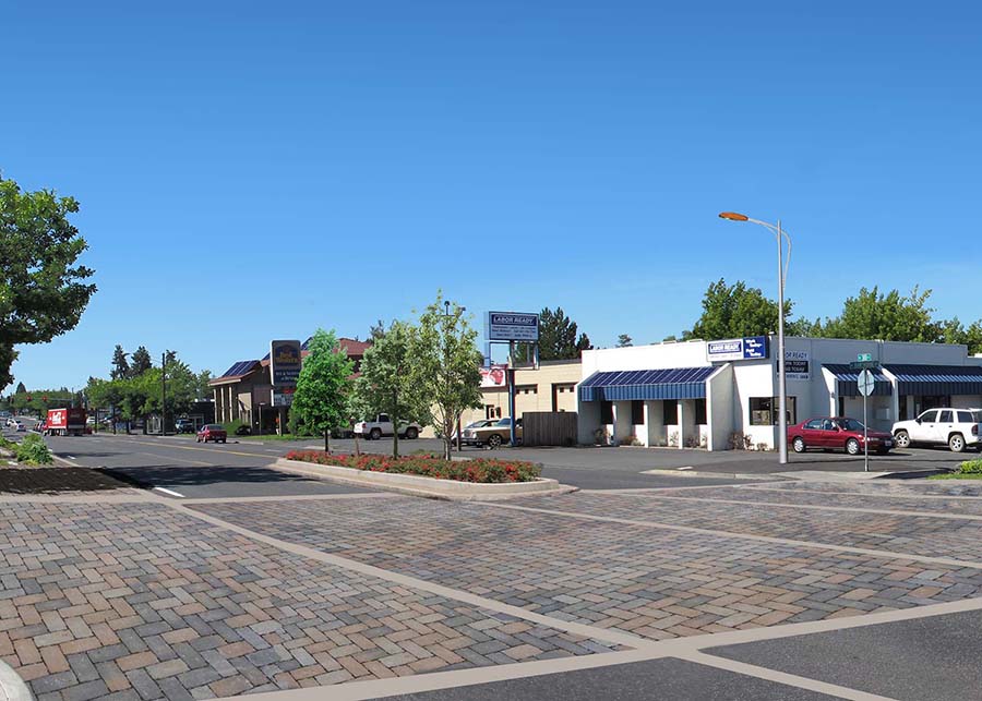 Due to current state-mandated mobility standards, it’s necessary for the city to obtain a Multi-Modal Area designation for this district before lots can be expanded. In the end, the goal of these visualizations is to encourage high-density, mixed-use zoning codes that will ultimately bring people, jobs, and tax revenue to this corridor of Bend.